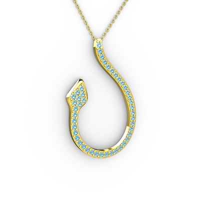 Akuamarin 14 ayar altın kolye (40 cm gümüş rolo zincir)