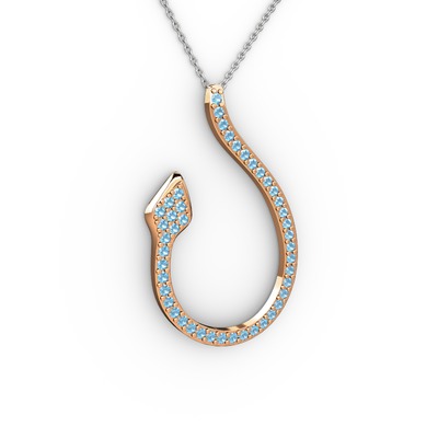 Akuamarin 14 ayar rose altın kolye (40 cm beyaz altın rolo zincir)