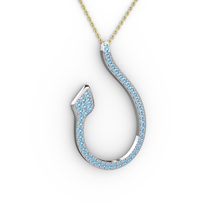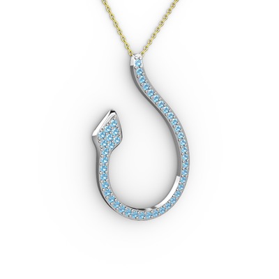 Akuamarin 18 ayar beyaz altın kolye (40 cm altın rolo zincir)