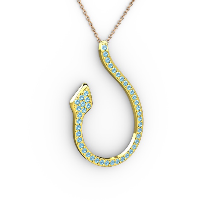 Akuamarin 8 ayar altın kolye (40 cm rose altın rolo zincir)