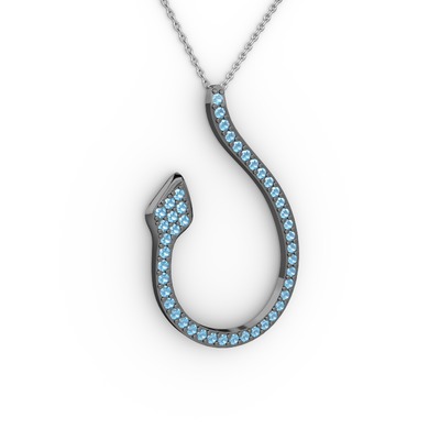 Akuamarin 925 ayar siyah rodyum kaplama gümüş kolye (40 cm beyaz altın rolo zincir)