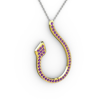 Ametist 14 ayar altın kolye (40 cm beyaz altın rolo zincir)