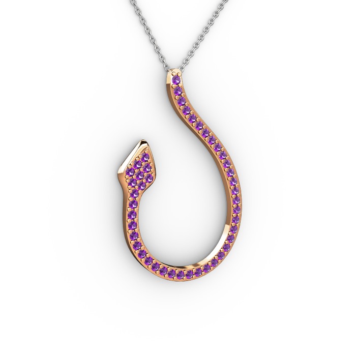 Ametist 18 ayar rose altın kolye (40 cm beyaz altın rolo zincir)