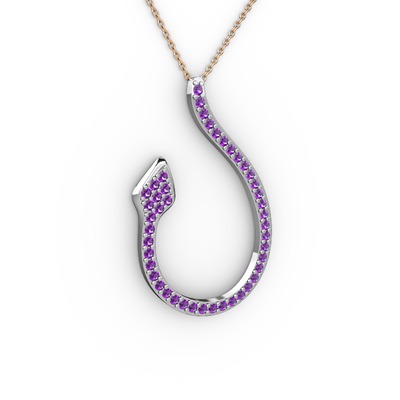 Ametist 8 ayar beyaz altın kolye (40 cm gümüş rolo zincir)