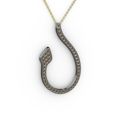 Dumanlı kuvars 925 ayar siyah rodyum kaplama gümüş kolye (40 cm altın rolo zincir)