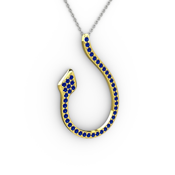 Lab safir 8 ayar altın kolye (40 cm beyaz altın rolo zincir)
