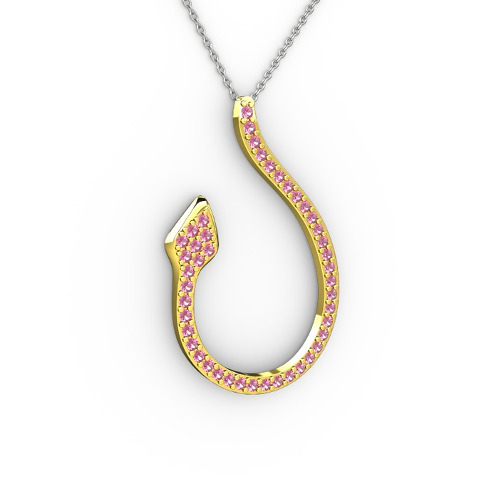 Pembe kuvars 14 ayar altın kolye (40 cm beyaz altın rolo zincir)