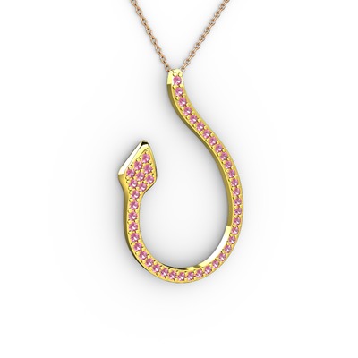 Pembe kuvars 14 ayar altın kolye (40 cm rose altın rolo zincir)