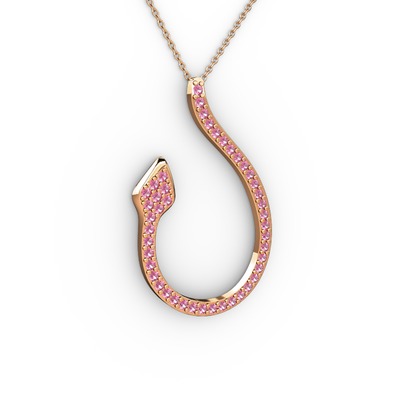 Pembe kuvars 14 ayar rose altın kolye (40 cm gümüş rolo zincir)