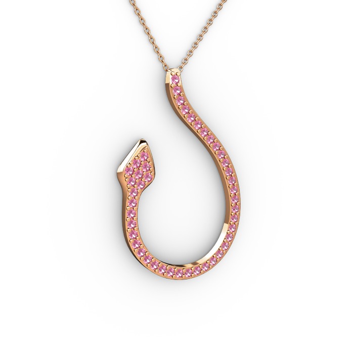 Pembe kuvars 18 ayar rose altın kolye (40 cm rose altın rolo zincir)
