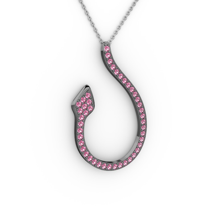 Pembe kuvars 925 ayar siyah rodyum kaplama gümüş kolye (40 cm gümüş rolo zincir)