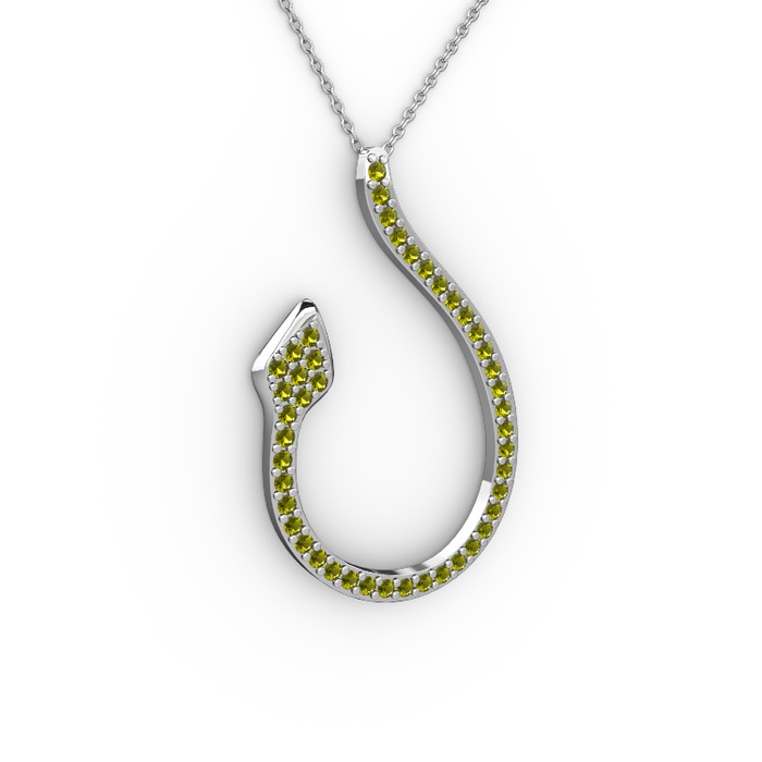 Peridot 18 ayar beyaz altın kolye (40 cm gümüş rolo zincir)