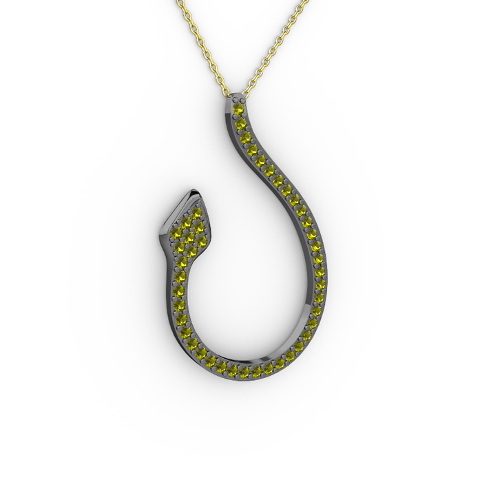 Peridot 925 ayar siyah rodyum kaplama gümüş kolye (40 cm altın rolo zincir)