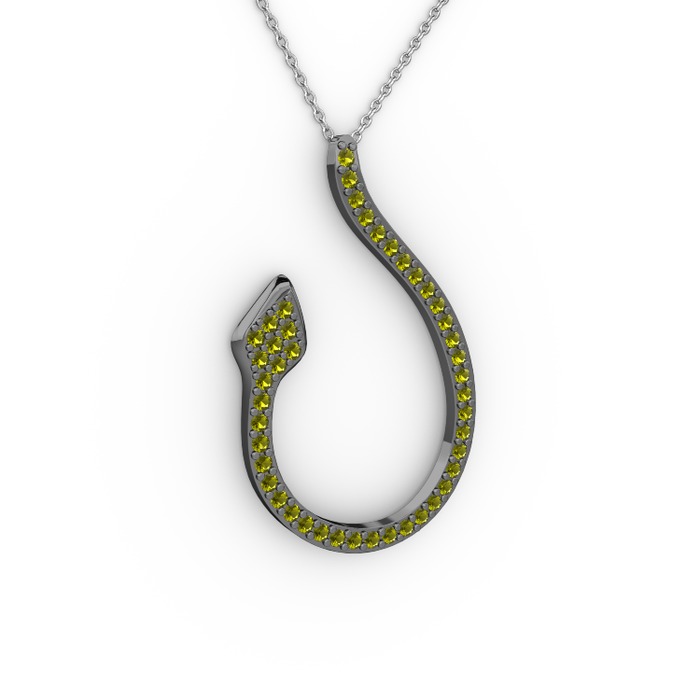 Peridot 925 ayar siyah rodyum kaplama gümüş kolye (40 cm gümüş rolo zincir)