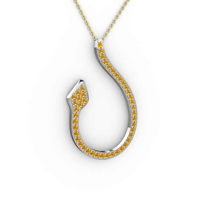Sitrin 8 ayar beyaz altın kolye (40 cm gümüş rolo zincir)