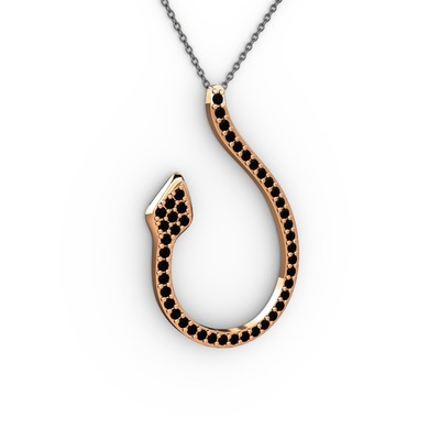 Siyah zirkon 8 ayar rose altın kolye (40 cm gümüş rolo zincir)