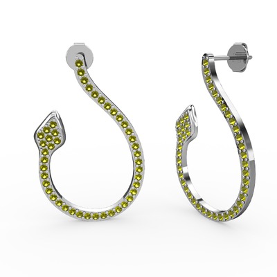 Peridot 14 ayar beyaz altın küpe