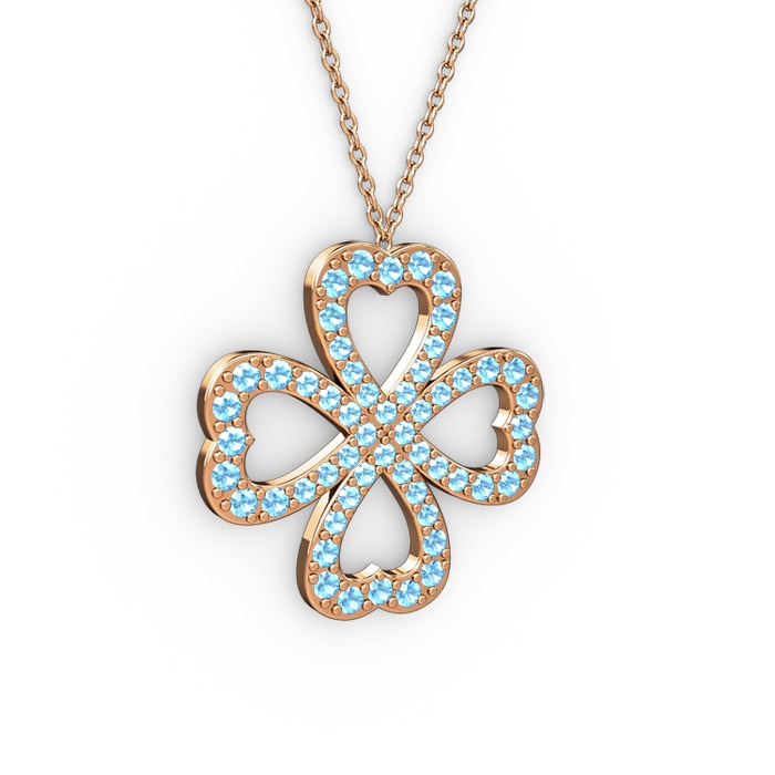 Akuamarin 14 ayar rose altın kolye (40 cm rose altın rolo zincir)