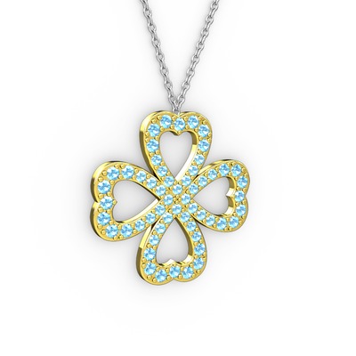 Akuamarin 8 ayar altın kolye (40 cm gümüş rolo zincir)