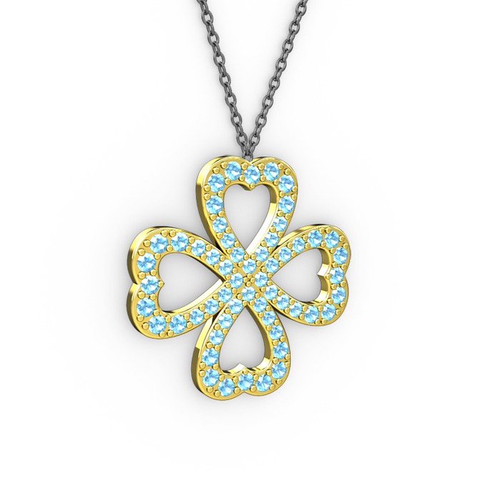Akuamarin 8 ayar altın kolye (40 cm gümüş rolo zincir)