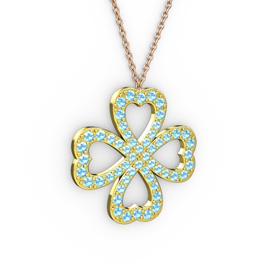 Akuamarin 925 ayar altın kaplama gümüş kolye (40 cm rose altın rolo zincir)