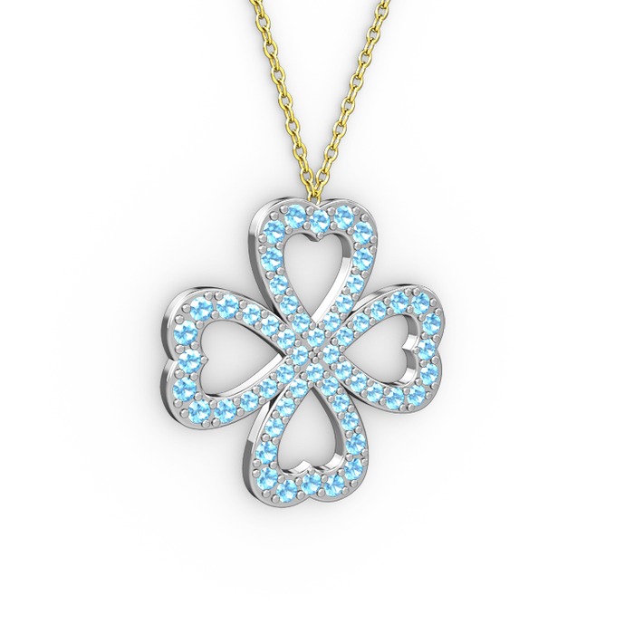 Akuamarin 925 ayar gümüş kolye (40 cm altın rolo zincir)
