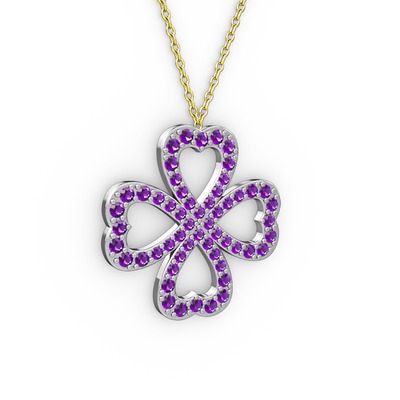 Ametist 8 ayar beyaz altın kolye (40 cm gümüş rolo zincir)