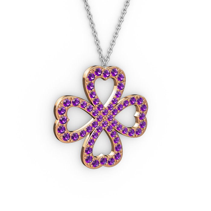 Ametist 925 ayar rose altın kaplama gümüş kolye (40 cm beyaz altın rolo zincir)