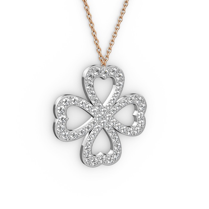 Beyaz zirkon 18 ayar beyaz altın kolye (40 cm rose altın rolo zincir)