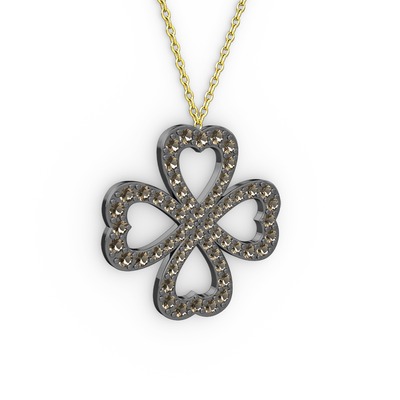 Dumanlı kuvars 925 ayar siyah rodyum kaplama gümüş kolye (40 cm altın rolo zincir)