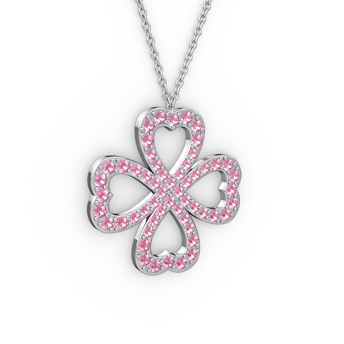Pembe kuvars 14 ayar beyaz altın kolye (40 cm gümüş rolo zincir)