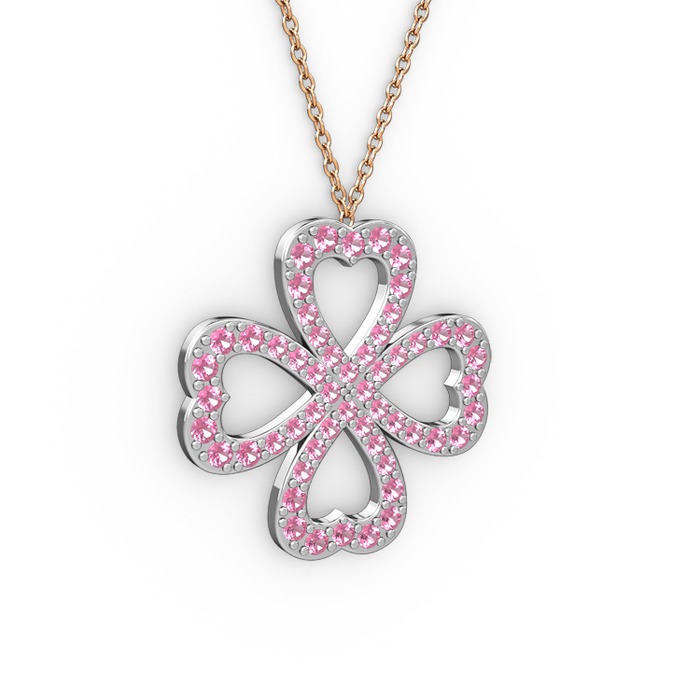 Pembe kuvars 925 ayar gümüş kolye (40 cm rose altın rolo zincir)