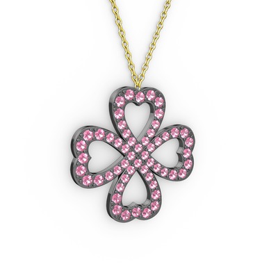 Pembe kuvars 925 ayar siyah rodyum kaplama gümüş kolye (40 cm altın rolo zincir)