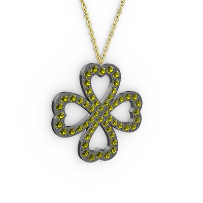 Peridot 925 ayar siyah rodyum kaplama gümüş kolye (40 cm gümüş rolo zincir)