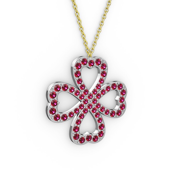 Rodolit garnet 18 ayar beyaz altın kolye (40 cm gümüş rolo zincir)