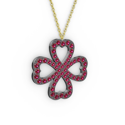 Rodolit garnet 925 ayar siyah rodyum kaplama gümüş kolye (40 cm altın rolo zincir)