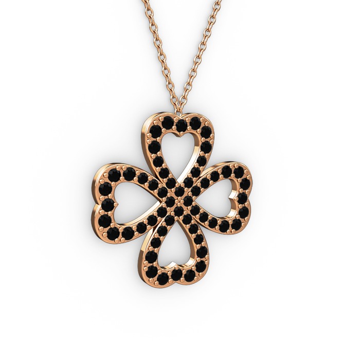 Siyah zirkon 18 ayar rose altın kolye (40 cm gümüş rolo zincir)