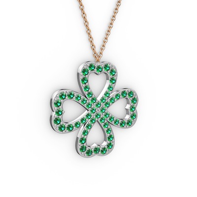 Yeşil kuvars 14 ayar beyaz altın kolye (40 cm rose altın rolo zincir)