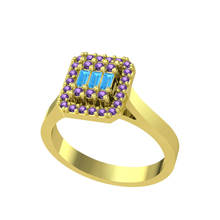 Akuamarin ve ametist 18 ayar altın yüzük