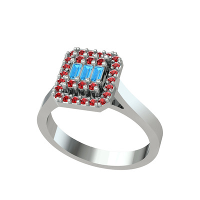 Akuamarin ve garnet 8 ayar beyaz altın yüzük