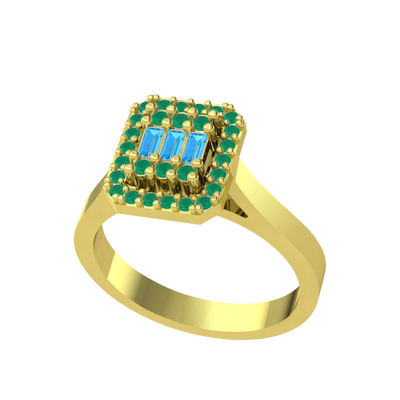 Akuamarin ve kök zümrüt 18 ayar altın yüzük