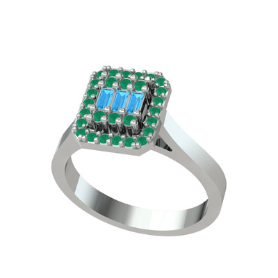 Akuamarin ve kök zümrüt 18 ayar beyaz altın yüzük