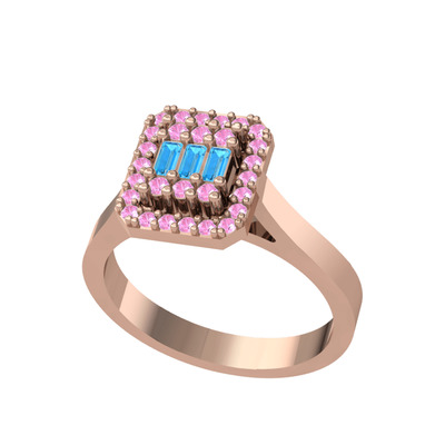 Akuamarin ve pembe kuvars 18 ayar rose altın yüzük