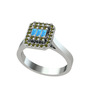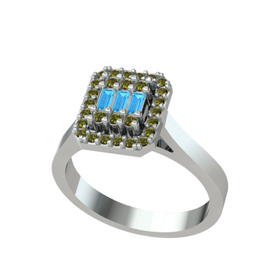 Akuamarin ve peridot 8 ayar beyaz altın yüzük