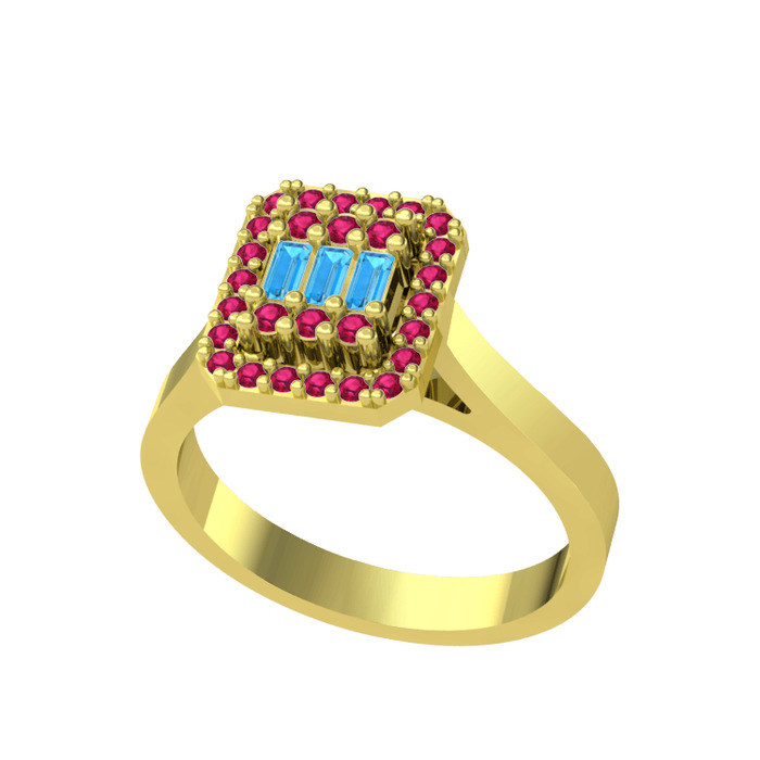 Akuamarin ve rodolit garnet 925 ayar altın kaplama gümüş yüzük