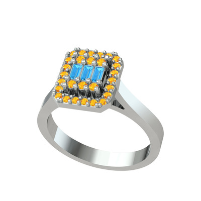 Akuamarin ve sitrin 8 ayar beyaz altın yüzük