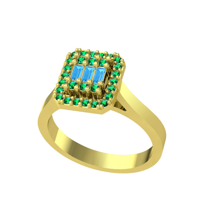 Akuamarin ve yeşil kuvars 18 ayar altın yüzük