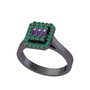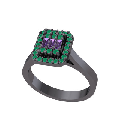 Ametist ve kök zümrüt 925 ayar siyah rodyum kaplama gümüş yüzük