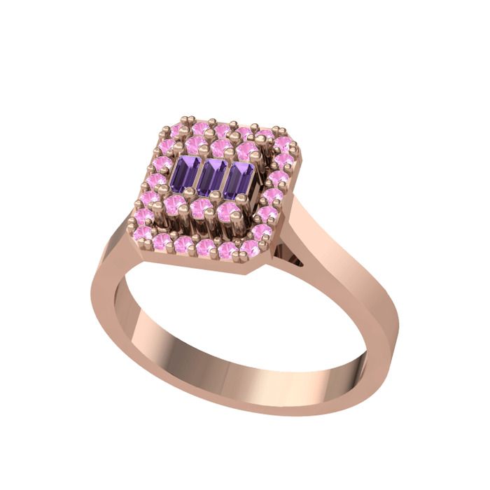Ametist ve pembe kuvars 18 ayar rose altın yüzük