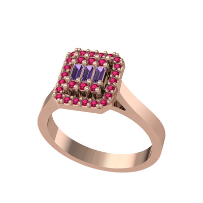 Ametist ve rodolit garnet 8 ayar rose altın yüzük